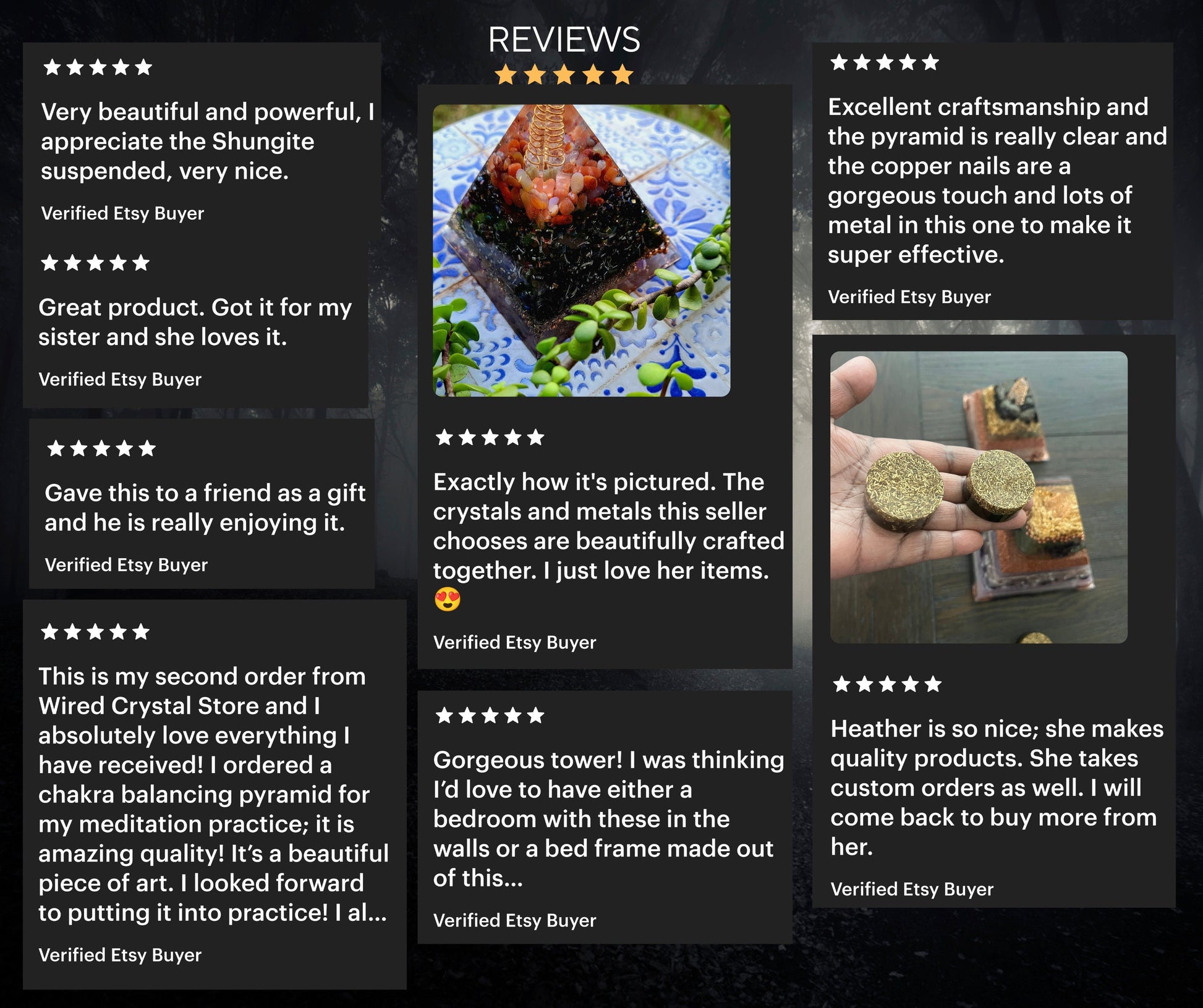 Due to the handcrafted nature of this piece, no two charging plates will look identical. Variations in tone, metal swirl patterns, or crystal placement are part of their unique character.