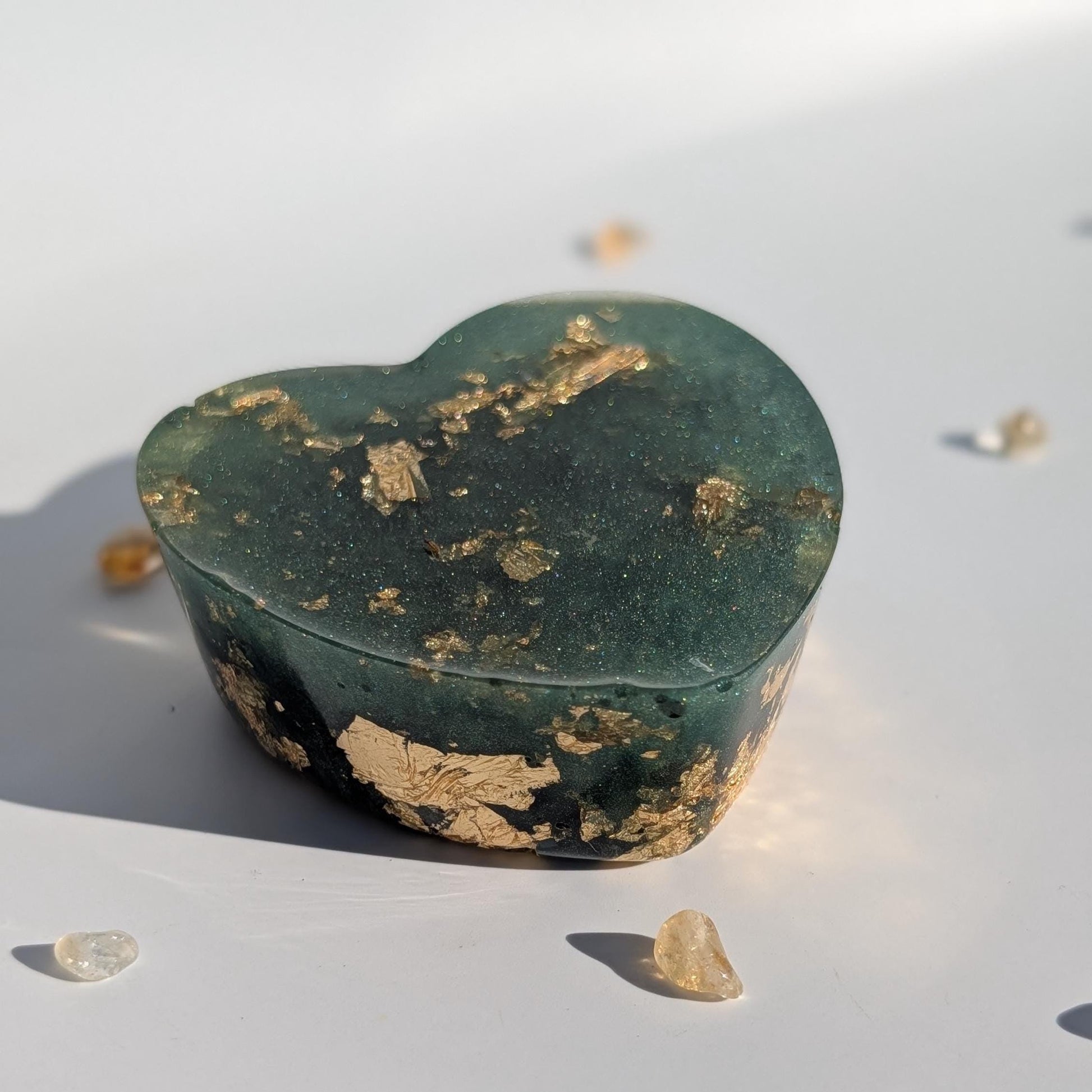 Heart Shaped Orgonite Tower Buster • Quartz Gold Steel Resin Heart • Handmade EMF Desk Decor • Unique Gift • Small Resin Art Accent