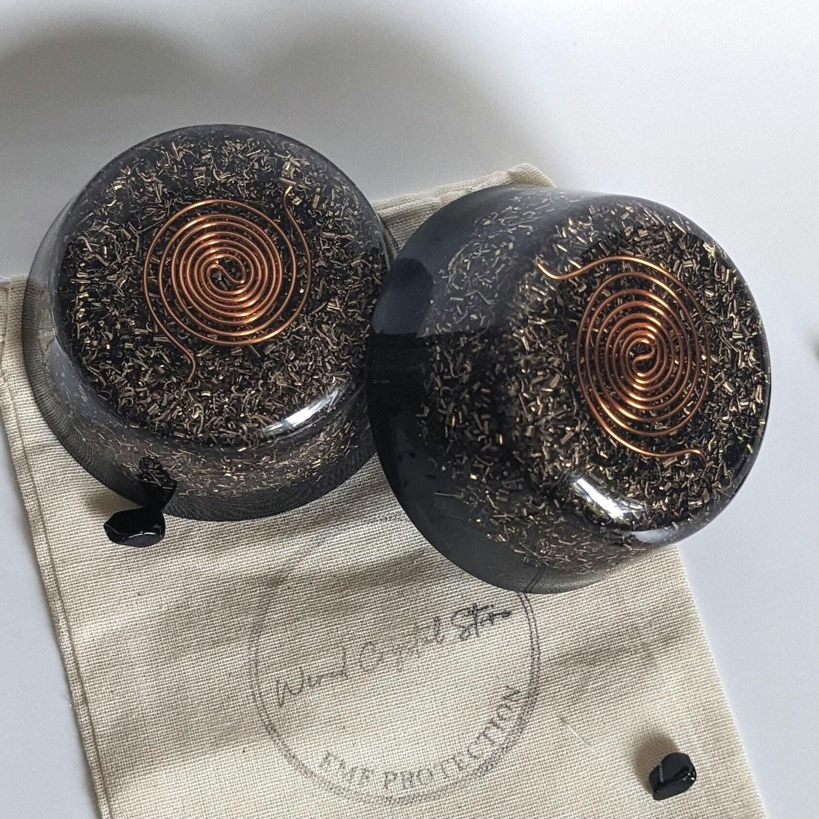 Large Shungite Orgonite Tower Busters with Copper, Brass & Quartz – Handmade Resin Discs for Home, Office and Tech Spaces