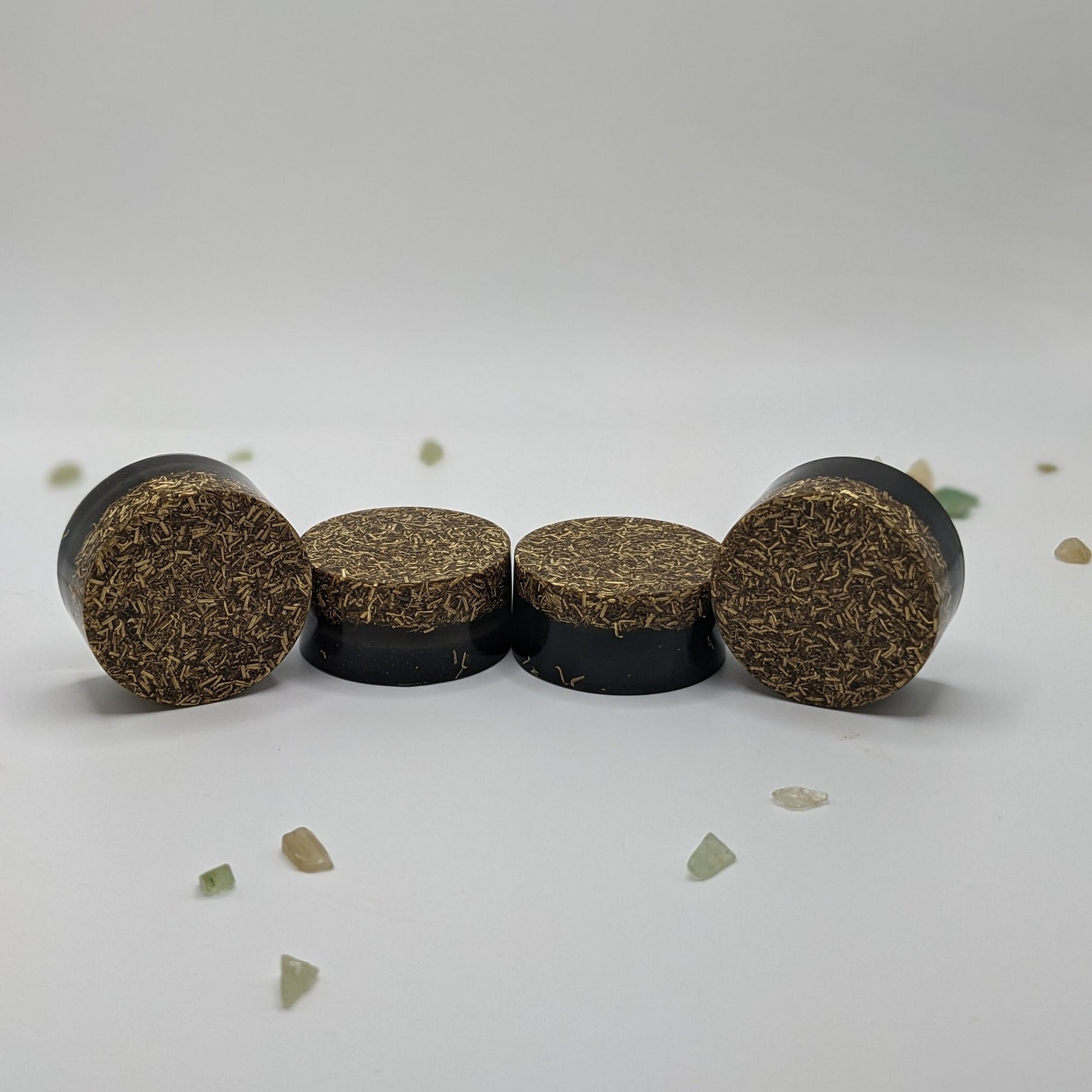 Take energy-balancing décor on the go with this mini tower buster set — a compact version of our classic orgonite design. Lightweight and portable, these resin discs are easy to carry in a bag, pocket, or car, and just as simple to place on desks, nightstands, or workstations.